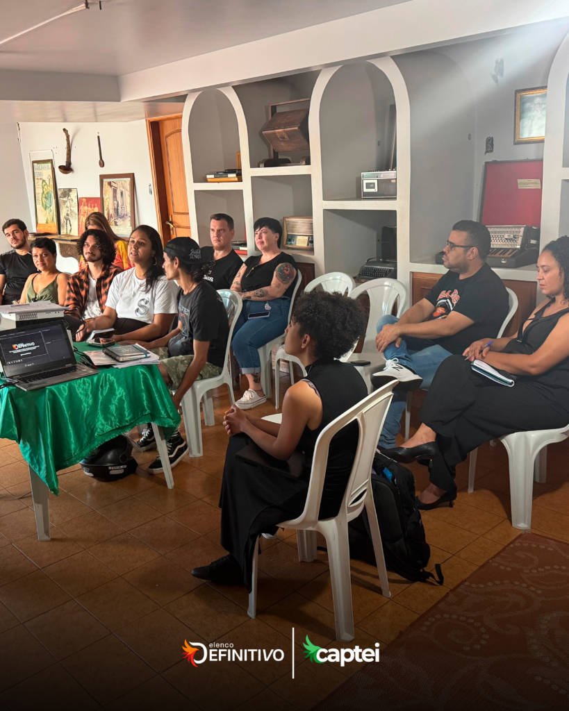 O Captei é um ciclo formativo idealizado e realizado pela Elenco Definitivo com o propósito de fortalecer o ecossistema cultural por meio da capacitação técnica e estratégica de artistas e agentes culturais.